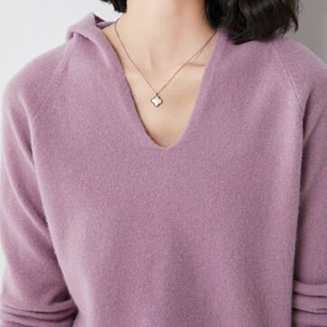 シンプルなデザインが大人の女性にピッタリの、Vネックパーカーです。