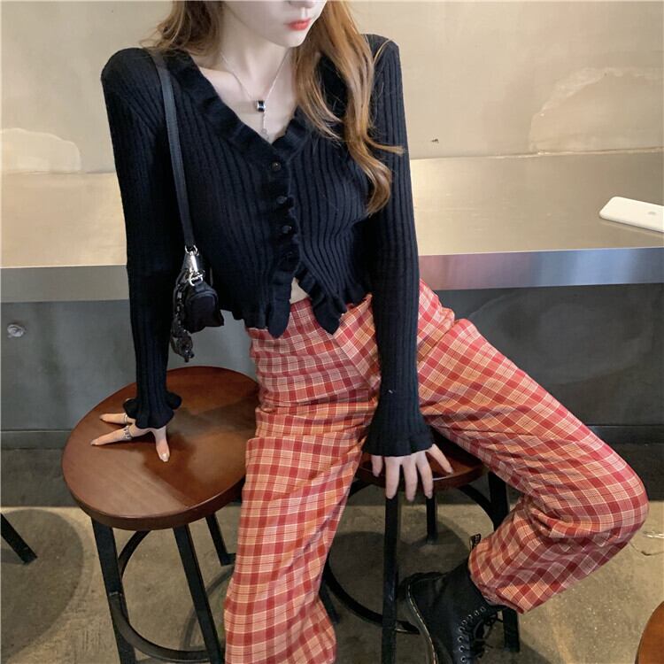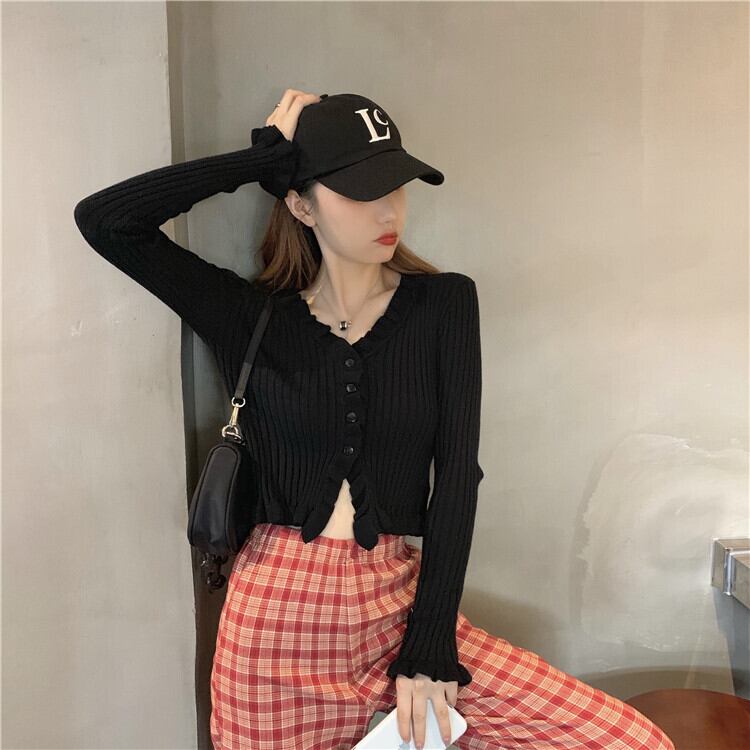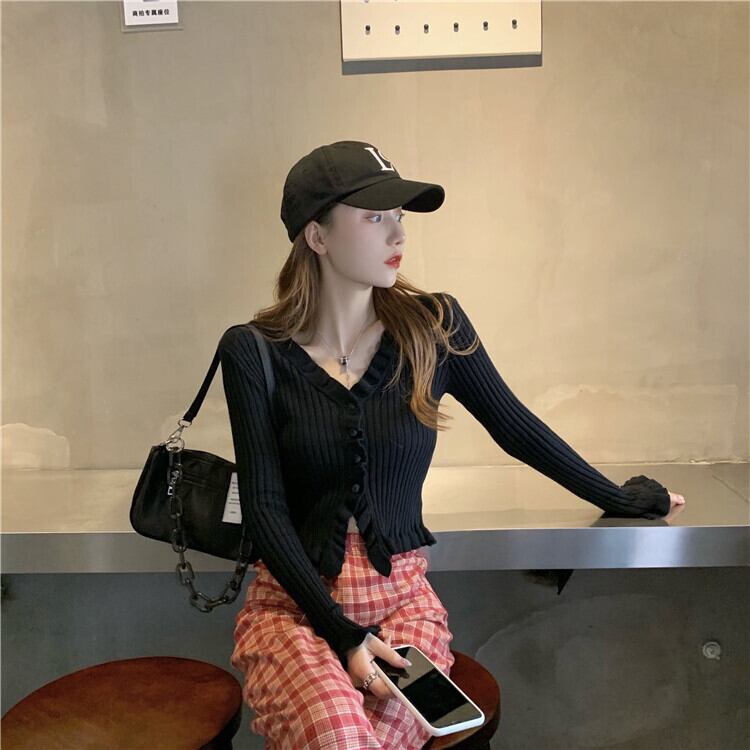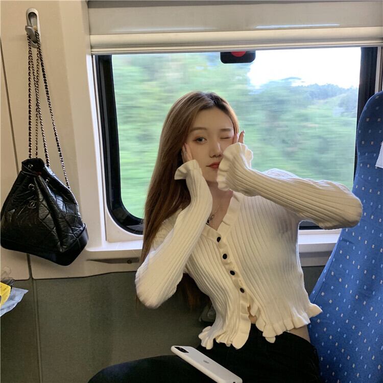 トップス レディース カーディガン 長袖 無地 春 秋 冬 セミフレア フリル かわいい 大人可愛い きれいめ シンプル カジュアル 大人 上品 おしゃれ お洒落 レトロ 大人可愛い 大人女子 こなれ感 ラフ キュート 個性的 Vネック 袖あり 黒 ブラック 紫 パープル オフホワイト くすみカラー 大人カラー ワンサイズ 20代 30代 通勤 学生 通学 デート お出かけ 女子会 休日 着回し 普段使い 韓国 韓国系 オルチャン ファッション コーデ モテ 送料無料 トレンド 流行 インスタ映え | Rena 韓国ファッション レディースアパレル