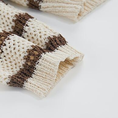 トップス レディース ニット 長袖 ボーダー 春 秋 冬 セミフレア かわいい 大人可愛い きれいめ シンプル カジュアル 大人 上品 おしゃれ お洒落 レトロ 大人可愛い 大人女子 こなれ感 ラフ キュート 個性的 Uネック 袖あり 白 ホワイト 茶色 ブラウン くすみカラー 大人カラー ワンサイズ 20代 30代 通勤 学生 通学 デート お出かけ 女子会 休日 着回し 普段使い 韓国 韓国系 オルチャン ファッション コーデ スタイル モテ 送料無料 トレンド 流行 インスタ映え | Rena 韓国ファッション レディースアパレル