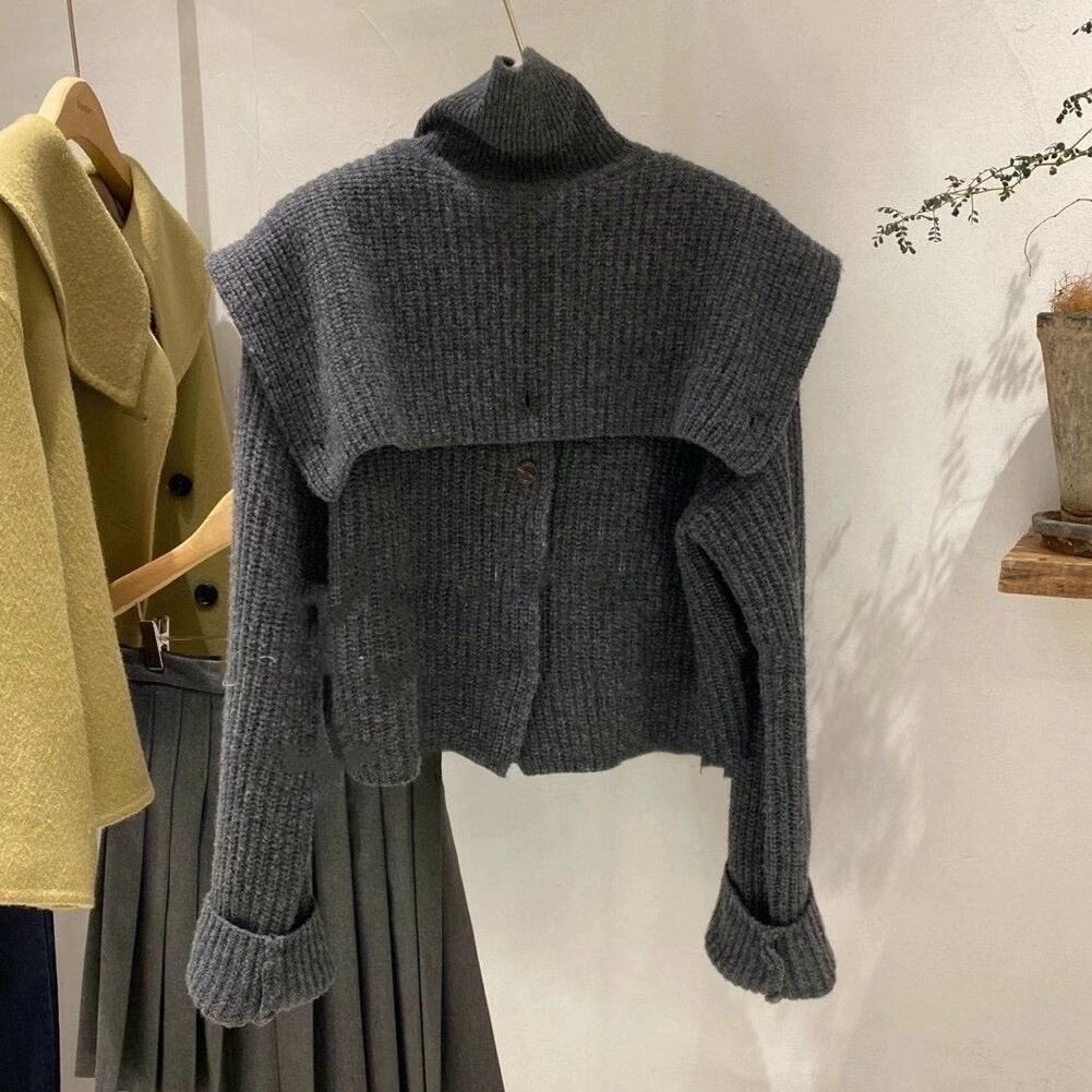 しっかりと寒さから守ってくれて安心の、ケープショール付きニットカーディガンです。