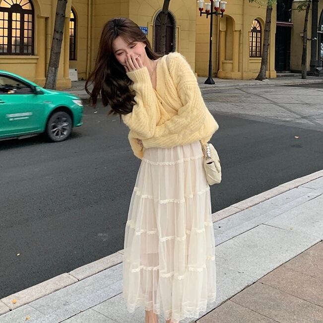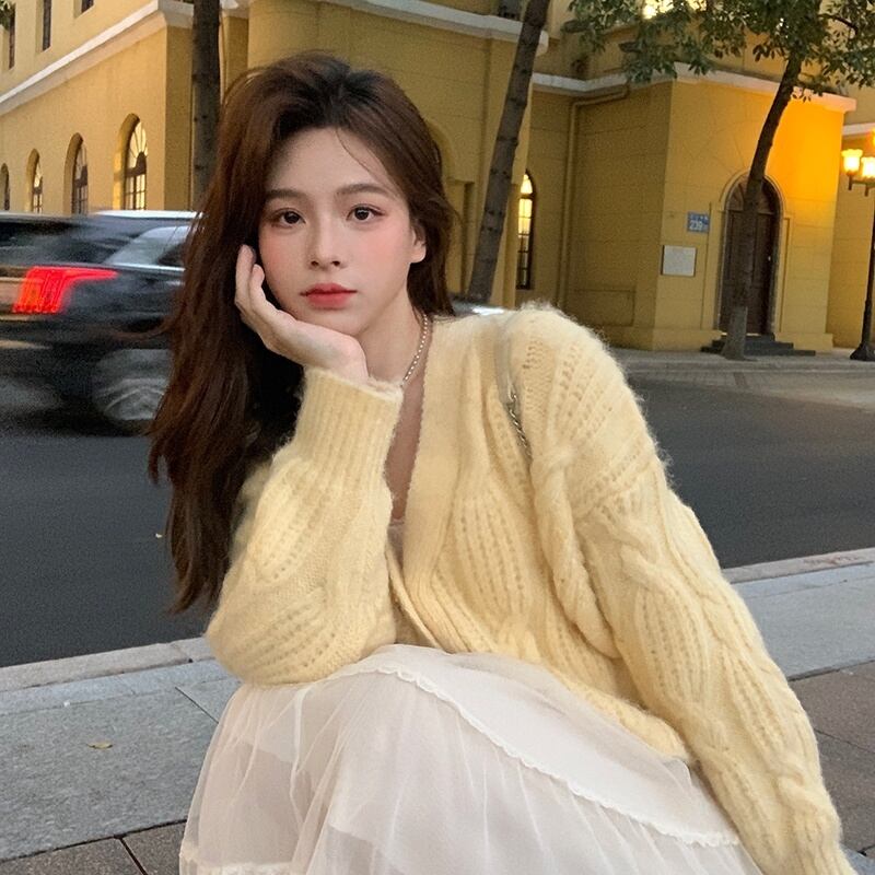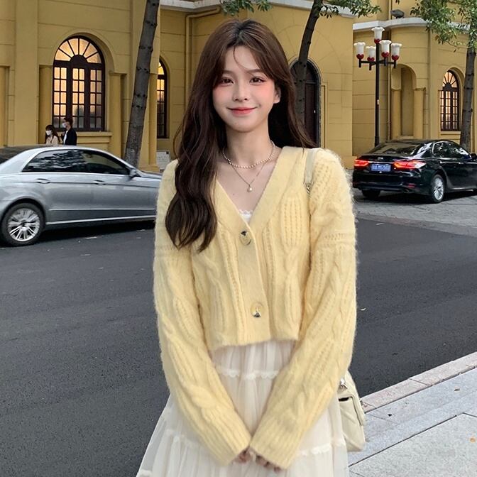 トップス レディース カーディガン ショート丈 無地 春 秋 冬 セミフレア 伸縮性 かわいい 大人可愛い きれいめ シンプル カジュアル 大人 上品 おしゃれ お洒落 レトロ 大人可愛い 大人女子 とろみ感 Vネック ショート 袖あり イエロー くすみカラー 大人カラー ベイクドカラー S M L XL 20代 30代 通学 デート お出かけ 公園デビュー 女子会 休日 リゾート 旅行 着回し 普段使い 韓国 オルチャン ファッション あったか 暖かい モテ 送料無料 トレンド 流行 インスタ映え | Rena 韓国ファッション レディースアパレル