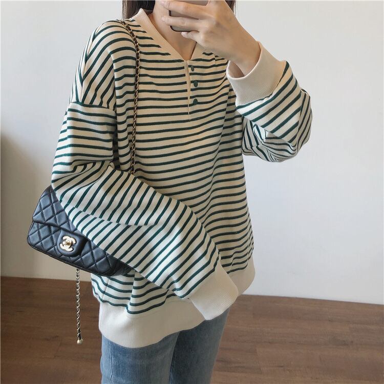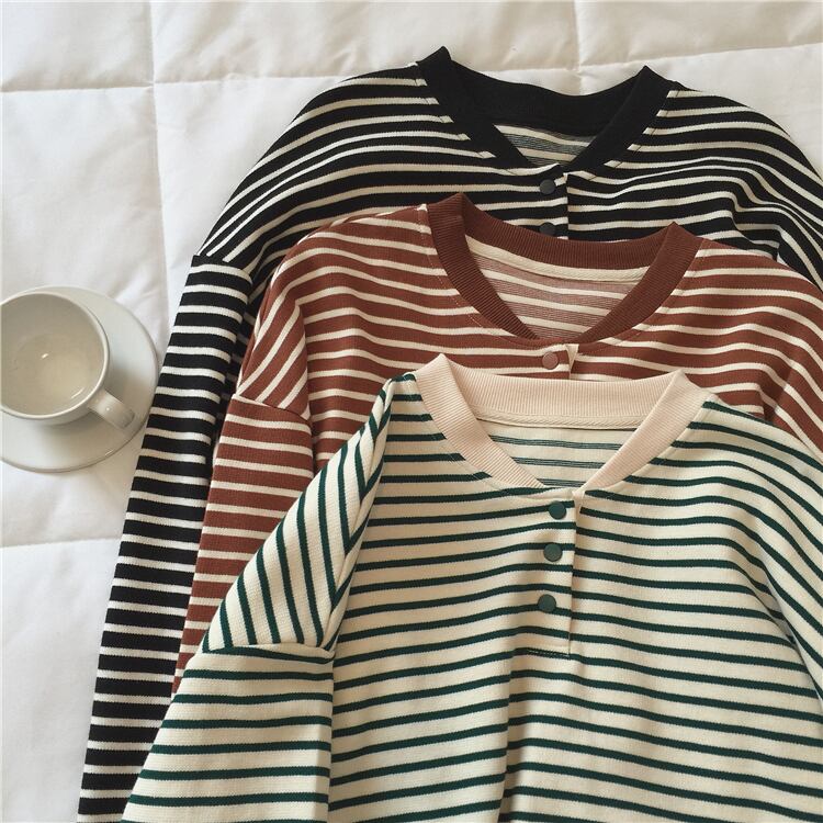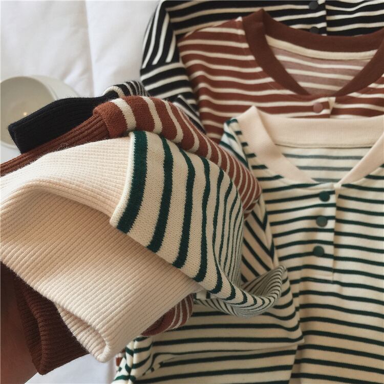 トップス レディース カットソー ショート丈 長袖 ボーダー 春 秋 冬 セミフレア かわいい 大人可愛い きれいめ シンプル カジュアル 大人 上品 おしゃれ お洒落 レトロ 大人可愛い 大人女子 キュート とろみ感 Uネック 袖あり 黒 ブラック 緑 グリーン 茶色 ブラウン ワンサイズ 20代 30代 通勤 学生 通学 デート お出かけ 公園デビュー 女子会 休日 イベント 旅行 着回し 普段使い 韓国 韓国系 オルチャン ファッション コーデ モテ 送料無料 トレンド 流行 インスタ映え | Rena 韓国ファッション レディースアパレル