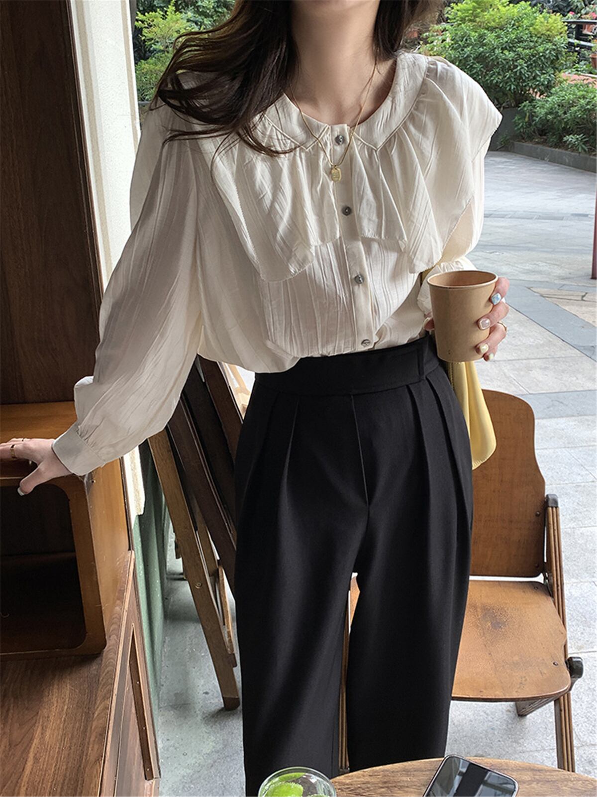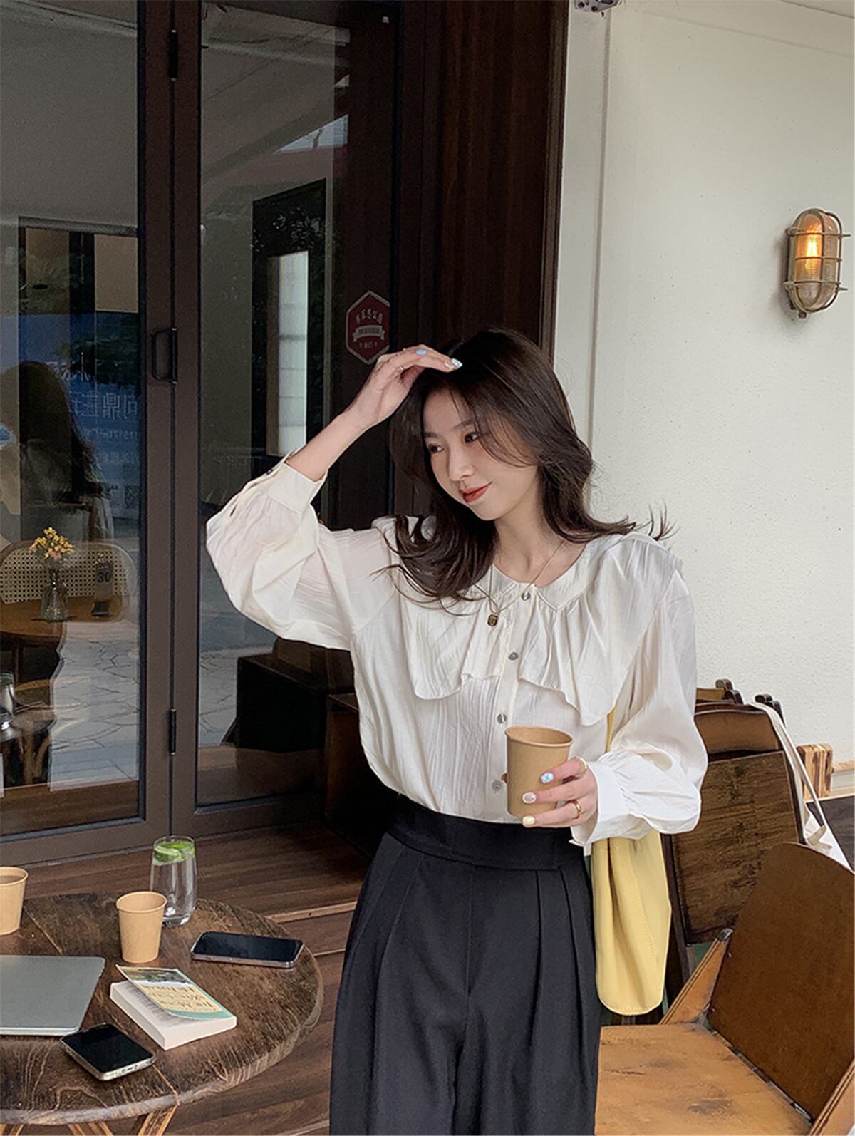 トップス レディース シャツ 長袖 無地 春 秋 冬 セミフレア シフォン ふわふわ かわいい 大人可愛い きれいめ シンプル カジュアル 大人 上品 おしゃれ お洒落 レトロ 大人可愛い 大人女子 こなれ感 キュート エレガント Uネック 袖あり くすみカラー 大人カラー ベイクドカラー ワンサイズ 20代 30代 オフィス ビジネス 学生 通学 デート お出かけ 公園デビュー 女子会 休日 着回し 普段使い 韓国 韓国系 オルチャン コーデ スタイル モテ 送料無料 トレンド 流行 インスタ映え | Rena 韓国ファッション レディースアパレル