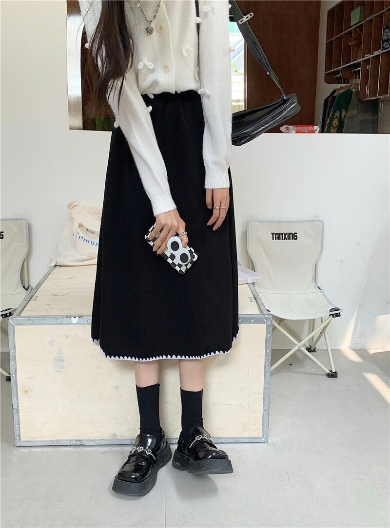 モノトーンのデザインがシックで上品なミドル丈スカートです。
