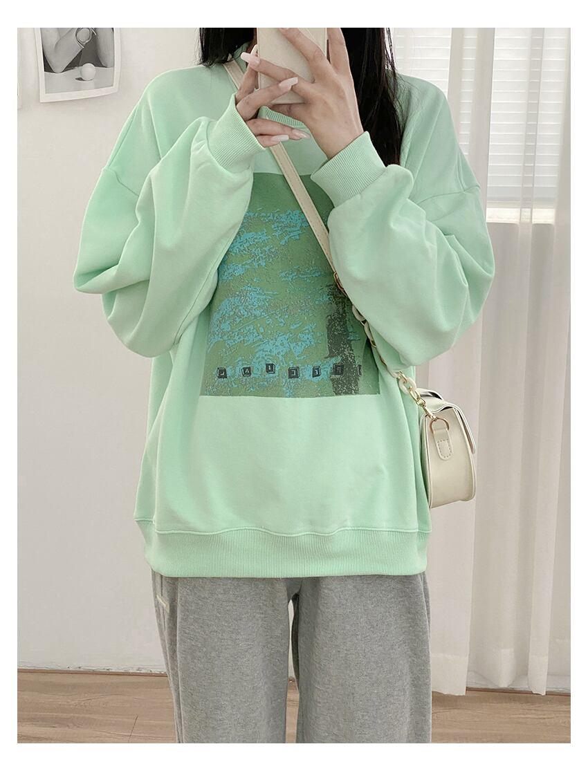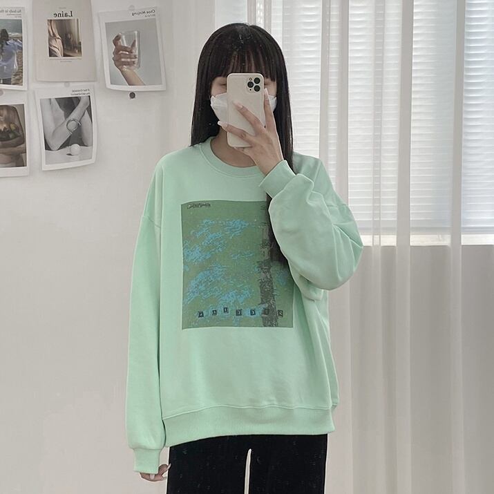 トップス レディース トレーナー ロング丈 長袖 プリント 春 秋 冬 セミフレア かわいい 大人可愛い きれいめ シンプル カジュアル 大人 上品 おしゃれ お洒落 レトロ 大人可愛い 大人女子 ラフ キュート Uネック ロング 袖あり くすみカラー 大人カラー M L 20代 30代 学生 通学 デート お出かけ 公園デビュー 女子会 休日 リゾート 旅行 着回し 普段使い 韓国 韓国系 オルチャン ファッション コーデ スタイル あったか プチプラ 送料無料 トレンド 流行 インスタ映え | Rena 韓国ファッション レディースアパレル