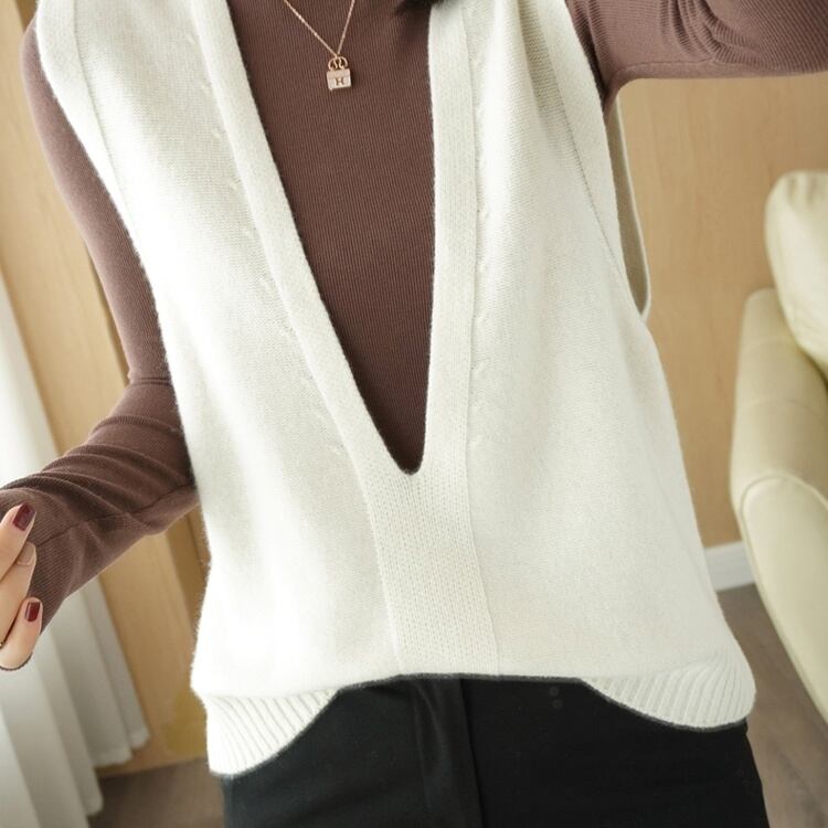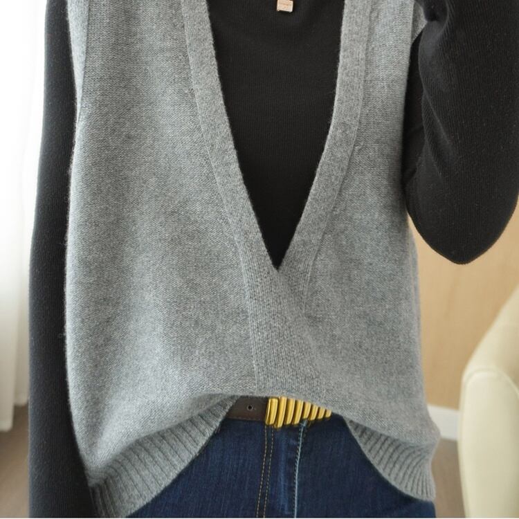 大きく空いたVネックのラインが特徴的で、大人っぽい印象を与えるおしゃれな一枚。