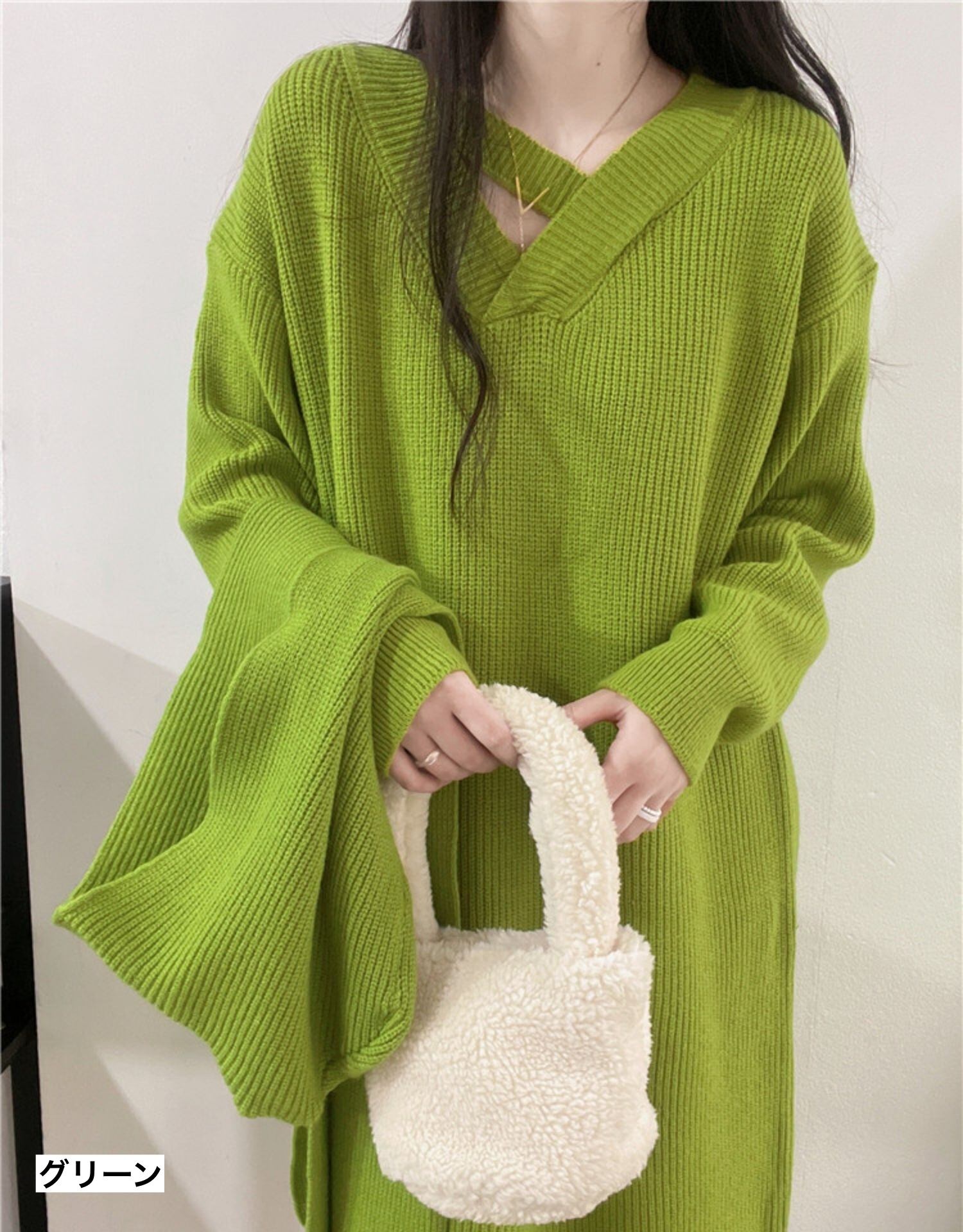 ワンピース レディース ニット ニットワンピース ひざ下 長袖 無地 春 秋 冬 セミフレア かわいい 大人可愛い きれいめ シンプル カジュアル 大人 上品 おしゃれ お洒落 レトロ 大人可愛い 大人女子 ラフ キュート とろみ感 Vネック ひざ丈 袖あり 白 ホワイト イエロー ピンク くすみカラー S M L XL 2XL 3XL 20代 30代 学生 デート お出かけ 休日 着回し 普段使い 重ね着 韓国 オルチャン ファッション コーデ 暖かい モテ 送料無料 トレンド 流行 インスタ映え