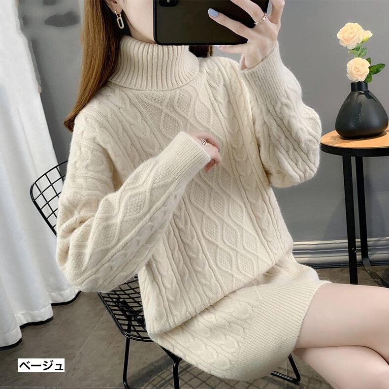 シンプルなデザインでさまざまな場面で使いやすい、タートルネックニットです。