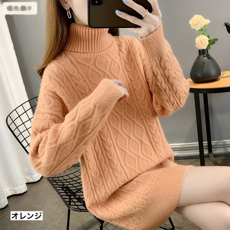 トップス レディース セーター ロング丈 長袖 無地 春 秋 冬 セミフレア かわいい 大人可愛い きれいめ シンプル カジュアル 大人 上品 おしゃれ お洒落 レトロ 大人可愛い 大人女子 ラフ キュート とろみ感 ハイネック ロング 袖あり 白 ホワイト 黒 ブラック 青 茶色 ブラウン ベージュ ピンク オレンジ くすみカラー M L XL 2XL 3XL 20代 30代 学生 デート お出かけ 休日 着回し 普段使い コーデ スタイル あったか 暖かい 送料無料 トレンド 流行 インスタ映え | Rena 韓国ファッション レディースアパレル