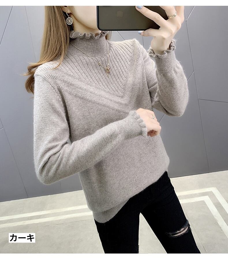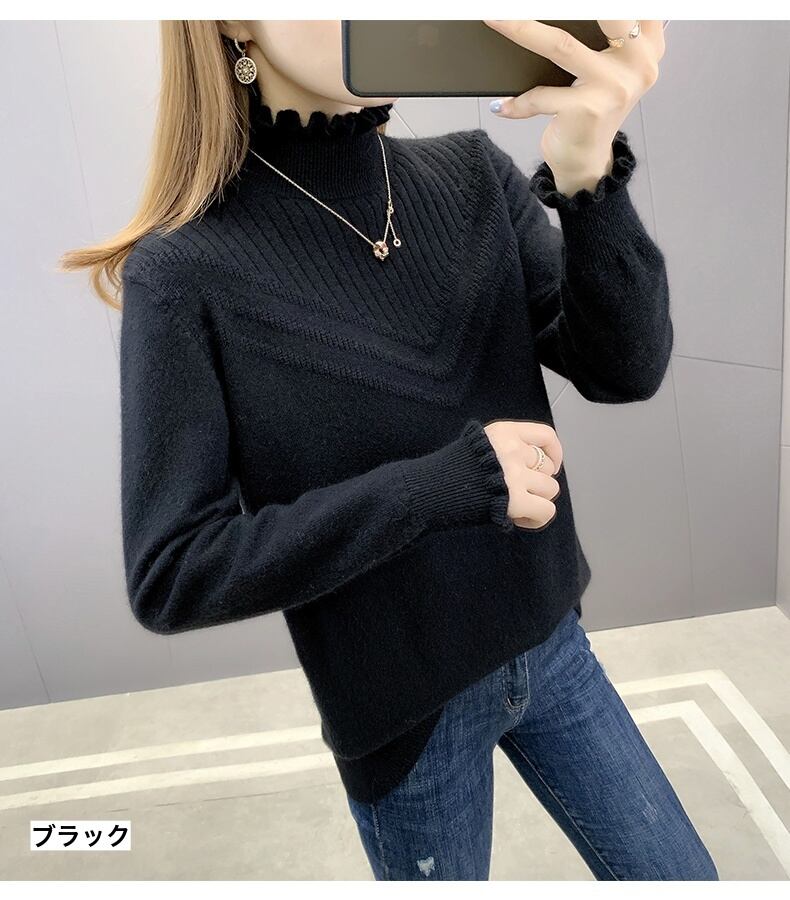 トップス レディース ニット ショート丈 長袖 無地 春 秋 冬 セミフレア かわいい 大人可愛い きれいめ シンプル カジュアル 大人 上品 おしゃれ お洒落 レトロ 大人可愛い 大人女子 ラフ キュート 個性的 ハイネック ショート 袖あり 黒 ブラック 青 ブルー オフホワイト カーキ ピンク くすみカラー S M L XL 2XL 20代 30代 学生 デート お出かけ 休日 着回し 普段使い 重ね着 韓国 オルチャン ファッション スタイル あったか 暖かい 送料無料 トレンド インスタ映え | Rena 韓国ファッション レディースアパレル