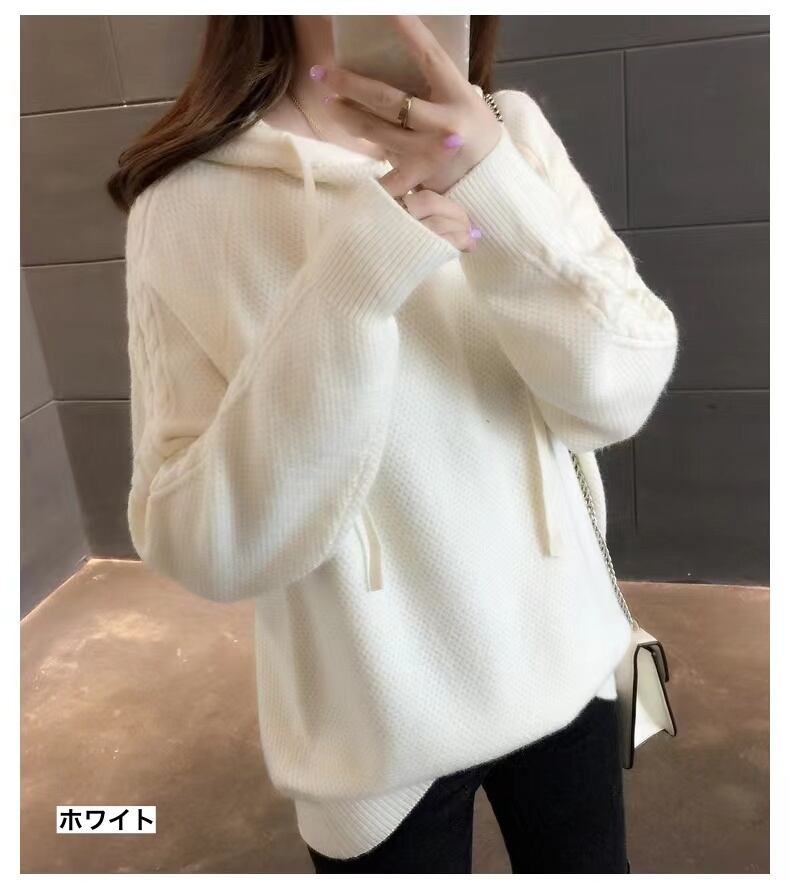 トップス レディース ニット パーカー ロング丈 長袖 無地 春 秋 冬 セミフレア フード付き かわいい 大人可愛い きれいめ シンプル カジュアル 大人 上品 おしゃれ お洒落 レトロ 大人可愛い 大人女子 ラフ キュート とろみ感 Vネック ロング 袖あり 白 ホワイト 青 ブルー カーキ ピンク S M L XL 2XL 20代 30代 学生 デート お出かけ 休日 着回し 普段使い 重ね着 韓国 オルチャン コーデ スタイル 楽ちん あったか モテ 送料無料 トレンド 流行 インスタ映え | Rena 韓国ファッション レディースアパレル