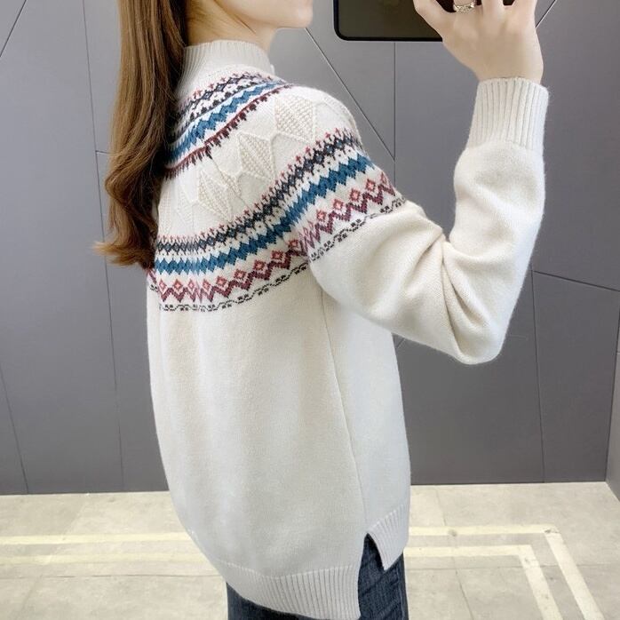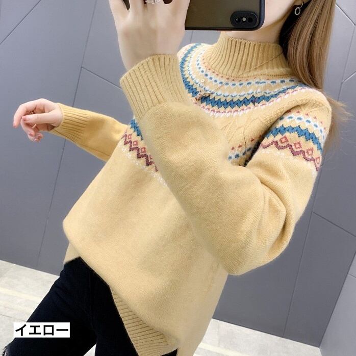 トップス レディース セーター ミディアム丈 長袖 刺繍 春 秋 冬 セミフレア かわいい 大人可愛い きれいめ シンプル カジュアル 大人 上品 おしゃれ お洒落 かっこいい レトロ 大人可愛い 大人女子 ガーリー ルーズ ハイネック ミモレ 袖あり 白 ホワイト 黒 ブラック 赤 レッド 青 ブルー イエロー S M L XL 2XL 3XL 20代 30代 学生 デート お出かけ 女子会 休日 着回し 普段使い 韓国 韓国系 コーデ スタイル モテ 送料無料 トレンド 流行 インスタ映え | Rena 韓国ファッション レディースアパレル