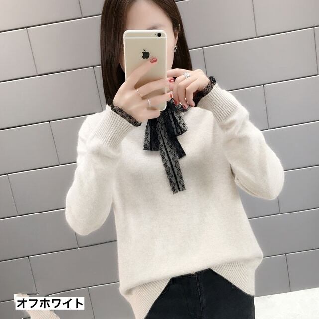 トップス レディース ニット ミディアム丈 長袖 無地 春 秋 冬 セミフレア リボン かわいい 大人可愛い きれいめ シンプル カジュアル 大人 上品 おしゃれ お洒落 かっこいい レトロ 大人可愛い 大人女子 ガーリー 襟付き ミモレ 袖あり 青 ブルー 灰色 グレー オフホワイト イエロー ピンク S M L XL 2XL 20代 30代 学生 デート お出かけ 女子会 休日 着回し 普段使い 韓国 韓国系 オルチャン ファッション コーデ スタイル モテ 送料無料 トレンド 流行 インスタ映え | Rena 韓国ファッション レディースアパレル