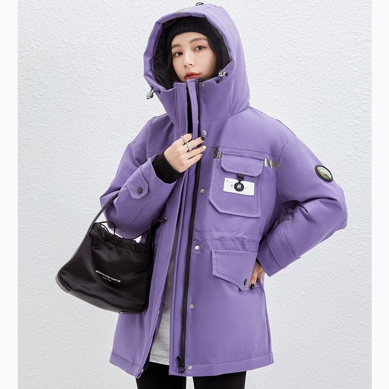 スタイリッシュで大人の女性も使いやすいデザインのダウンジャケットです。