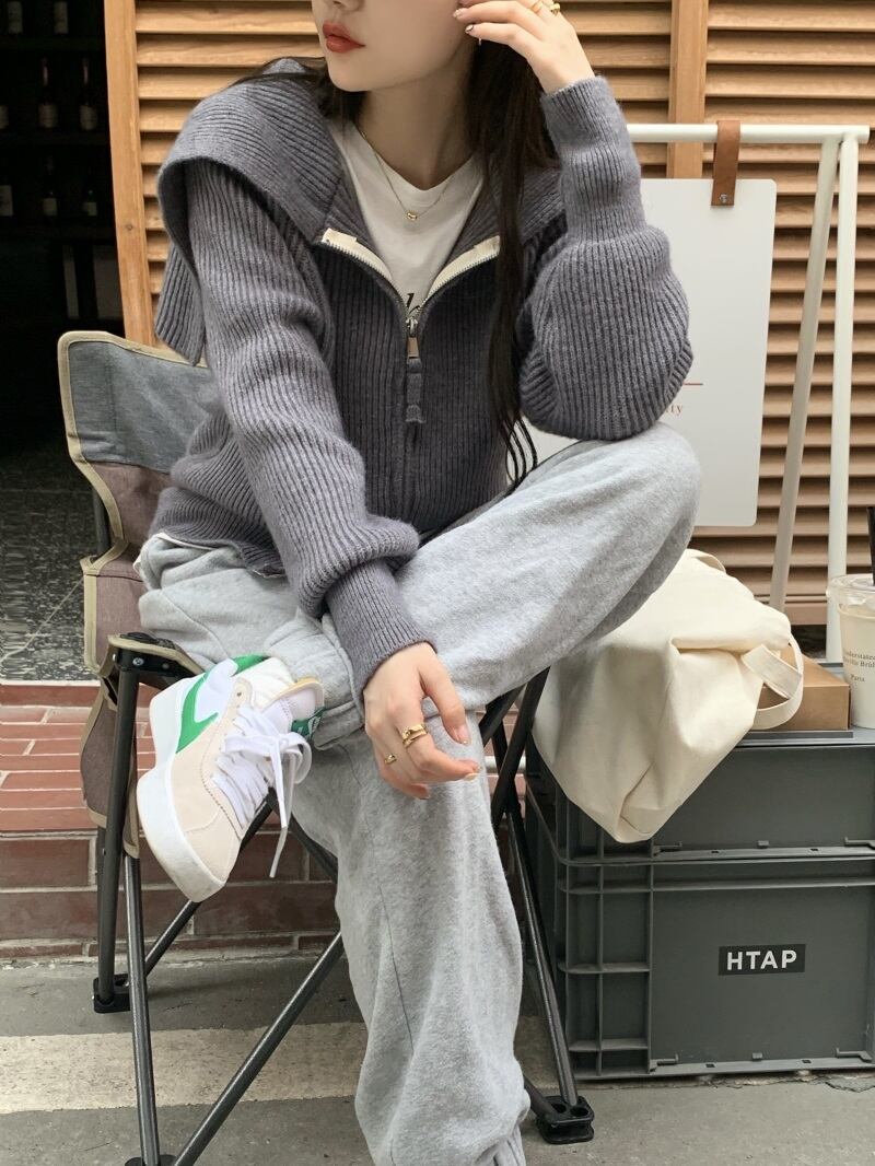 トップス レディース ニット パーカー ロング丈 長袖 無地 春 秋 冬 セミフレア かわいい 大人可愛い きれいめ シンプル カジュアル 大人 上品 おしゃれ お洒落 かっこいい レトロ 大人可愛い 大人女子 ガーリー ルーズ Vネック ロング 袖あり 灰色 グレー オフホワイト くすみカラー S M L XL 2XL 20代 30代 学生 デート お出かけ 女子会 休日 着回し 普段使い 韓国 韓国系 オルチャン ファッション スタイル モテ 送料無料 トレンド 流行 インスタ映え | Rena 韓国ファッション レディースアパレル