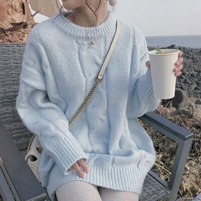 トップス レディース ニット ロング丈 長袖 無地 春 秋 冬 セミフレア かわいい 大人可愛い きれいめ シンプル カジュアル 大人 上品 おしゃれ お洒落 かっこいい レトロ 大人可愛い 大人女子 ガーリー ルーズ Uネック ロング 袖あり 白 ホワイト 青 ブルー 紫 パープル ピンク くすみカラー S M L XL 2XL 20代 30代 学生 デート お出かけ 女子会 休日 着回し 普段使い 韓国 韓国系 オルチャン ファッション スタイル モテ 送料無料 トレンド 流行 インスタ映え | Rena 韓国ファッション レディースアパレル