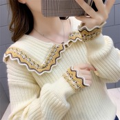 トップス レディース ニット ロング丈 長袖 無地 春 秋 冬 セミフレア かわいい 大人可愛い きれいめ シンプル カジュアル 大人 上品 おしゃれ お洒落 レトロ キュート 襟付き ショート 袖あり 白 ホワイト 赤 レッド 黄色 イエロー ネイビー くすみカラー 大人カラー ボルドー S M L XL 20代 30代 学生 デート お出かけ 女子会 休日 着回し 普段使い 韓国 韓国系 オルチャン ファッション コーデ スタイル あったか モテ プチプラ 送料無料 トレンド 流行 インスタ映え