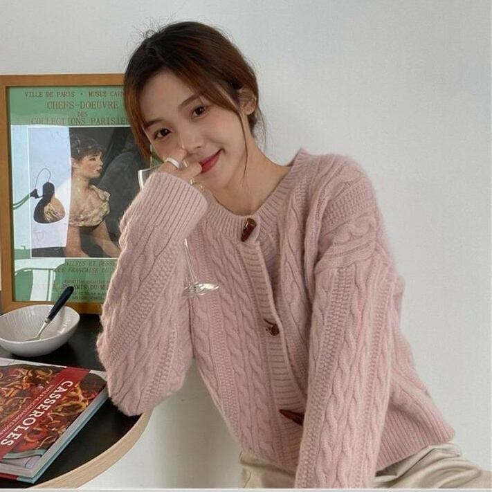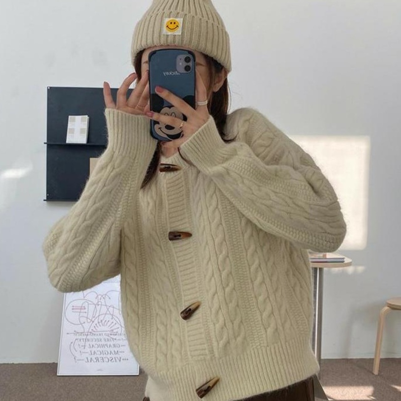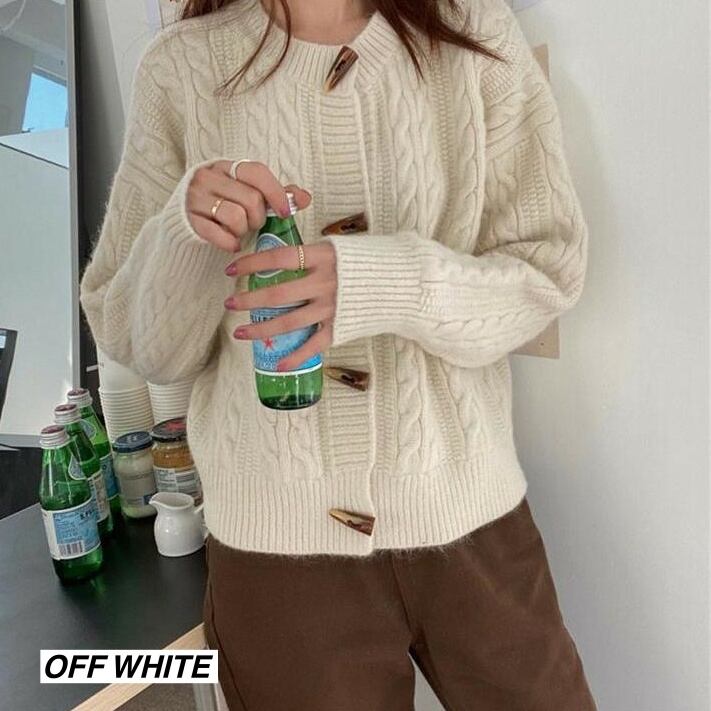 アウターとして使える、しっかり厚手のニットカーディガンです。