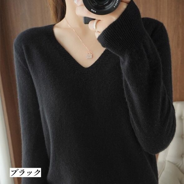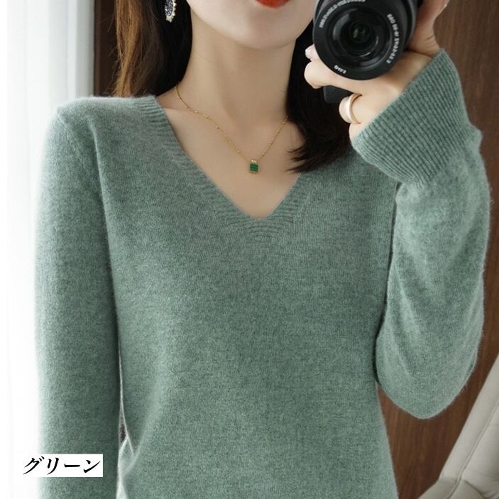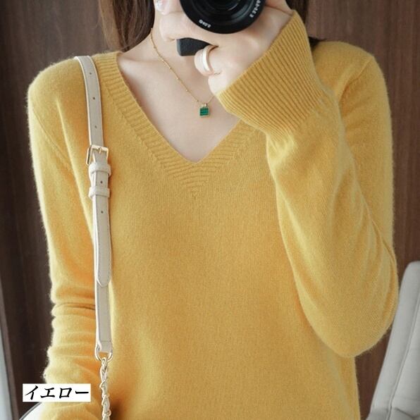 首元がスッキリ見えて大人かわいい、Vネックニットです。