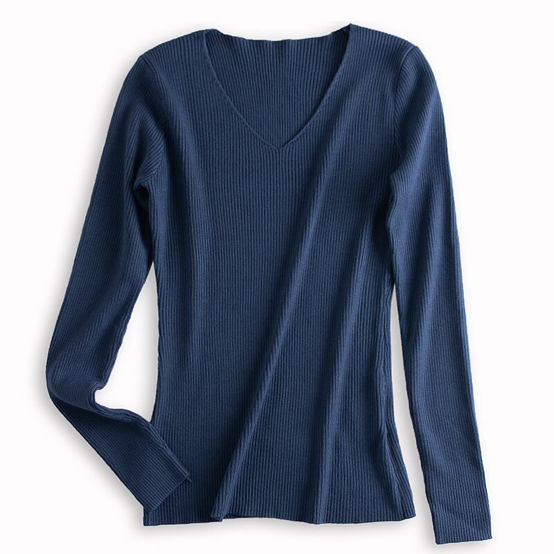 体のラインにフィットしてスッキリと着こなせる、長袖カラートップスです。