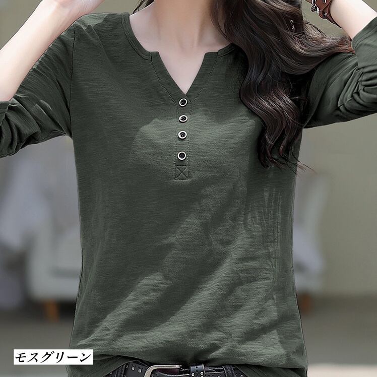 Vネックで、首元をきれいに見せてくれる嬉しい一枚。
