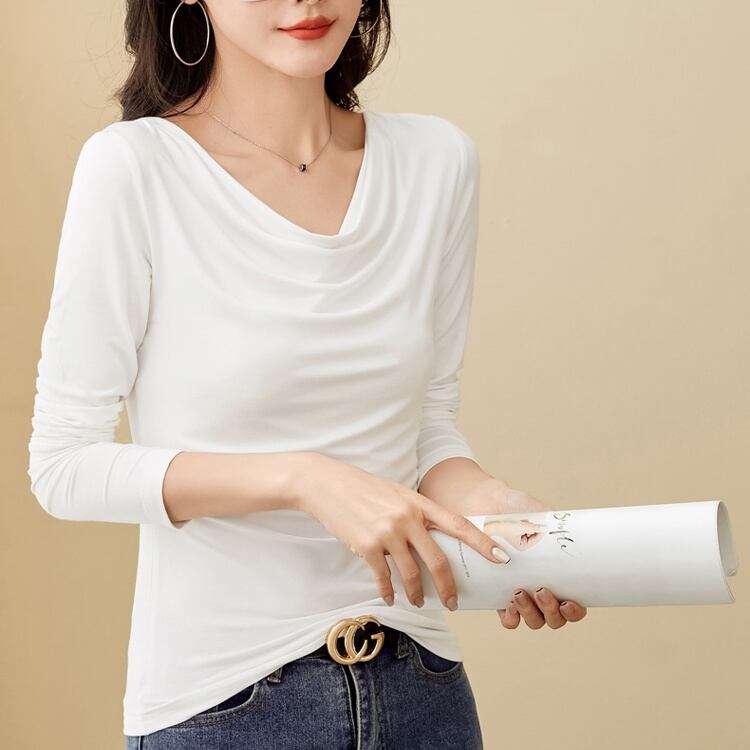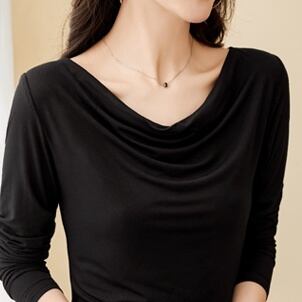 首周りはゆったりと見えるデザインで、シンプルながらも大人っぽい上品な印象に。