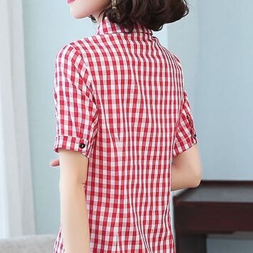 トップス レディース シャツ ショート丈 半袖 ギンガムチェック 春 夏 セミフレア 細身 かわいい 大人可愛い きれいめ シンプル カジュアル 大人 上品 おしゃれ お洒落 レトロ こなれ感 抜け感 襟付き ショート 袖あり 黒 ブラック 赤 レッド 青 くすみカラー 大人カラー S M L XL 2XL 3XL 4XL 20代 30代 通勤 学生 デート お出かけ 女子会 休日 アウトドア 着回し 普段使い 韓国 韓国系 オルチャン ファッション モテ 送料無料 トレンド 流行 インスタ映え | Rena 韓国ファッション レディースアパレル