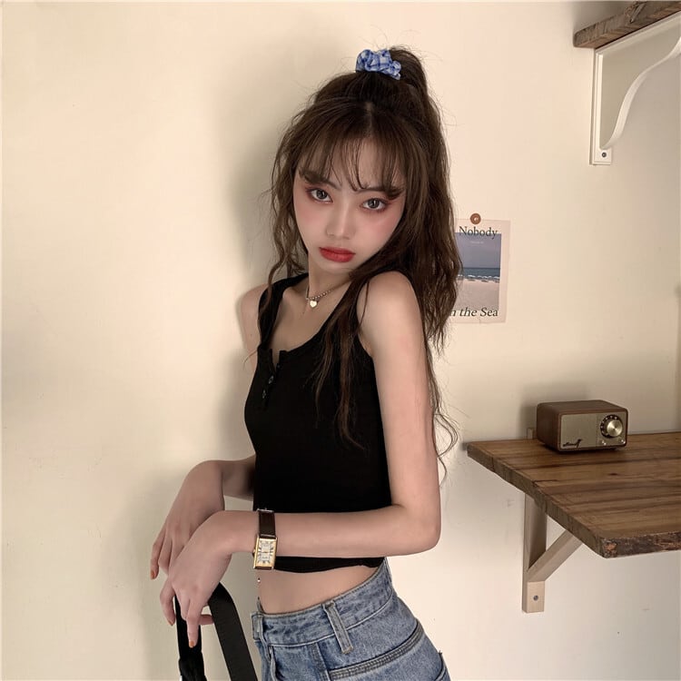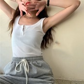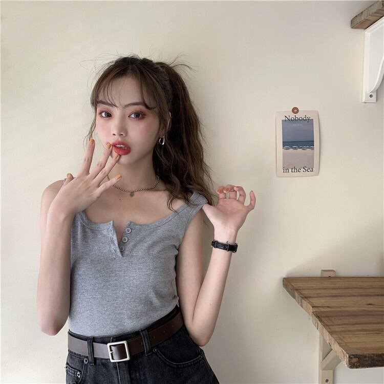 トップス レディース タンクトップ ショート丈 ノースリーブ 無地 春 夏 セミフレア かわいい 大人可愛い カジュアル おしゃれ お洒落 レトロ ラフ キュート 個性的 クール モダン Uネック ショート 袖なし 白 ホワイト 黒 ブラック 灰色 グレー くすみカラー 大人カラー ワンサイズ 20代 30代 学生 通学 デート お出かけ 公園デビュー 女子会 休日 アウトドア 着回し 普段使い 韓国系 オルチャン ファッション コーデ スタイル モテ プチプラ 送料無料 トレンド 流行 インスタ映え | Rena 韓国ファッション レディースアパレル