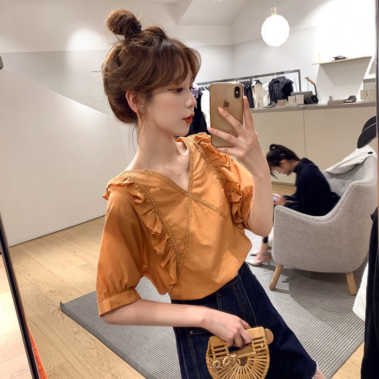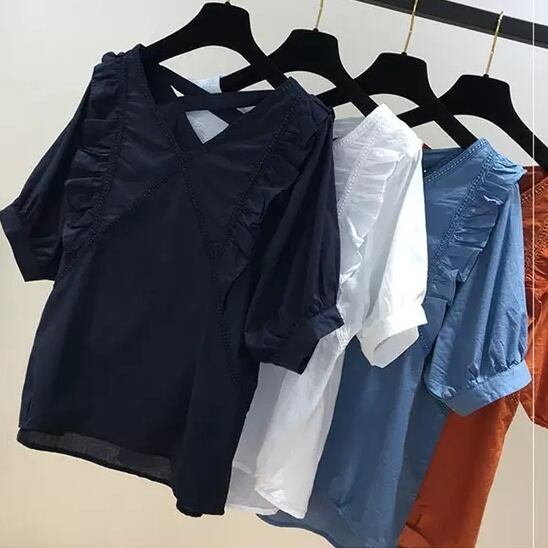 トップス レディース シャツ ショート丈 五分袖 無地 春 夏 秋 セミフレア かわいい 大人可愛い きれいめ シンプル カジュアル 大人 おしゃれ かっこいい レトロ 大人女子 こなれ感 ラフ セクシー エレガント Vネック 襟付き ショート 5分袖 白 ホワイト 黒 ブラック 青 ブルー 緑 グリーン オレンジ 大人カラー M L XL 2XL 3XL 4XL 20代 30代 学生 通学 デート お出かけ 女子会 休日 イベント 着回し 普段使い 韓国 韓国系 送料無料 トレンド 流行 インスタ映え | Rena 韓国ファッション レディースアパレル