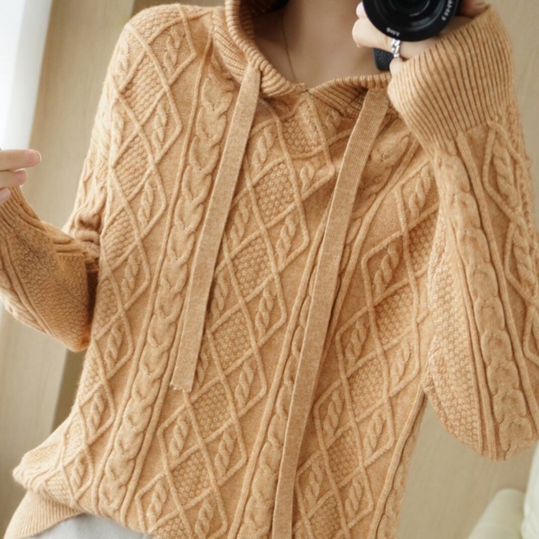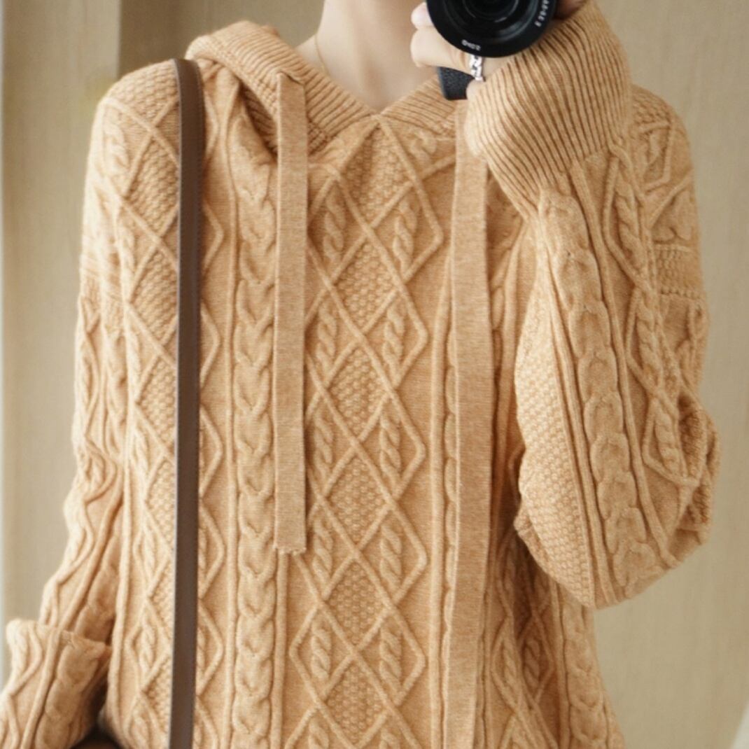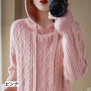 しっかりとした温かさで大人気のフード付きニットパーカーです。