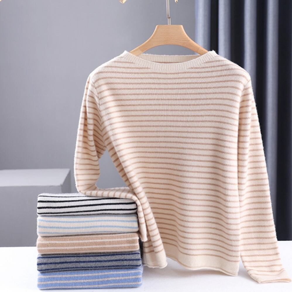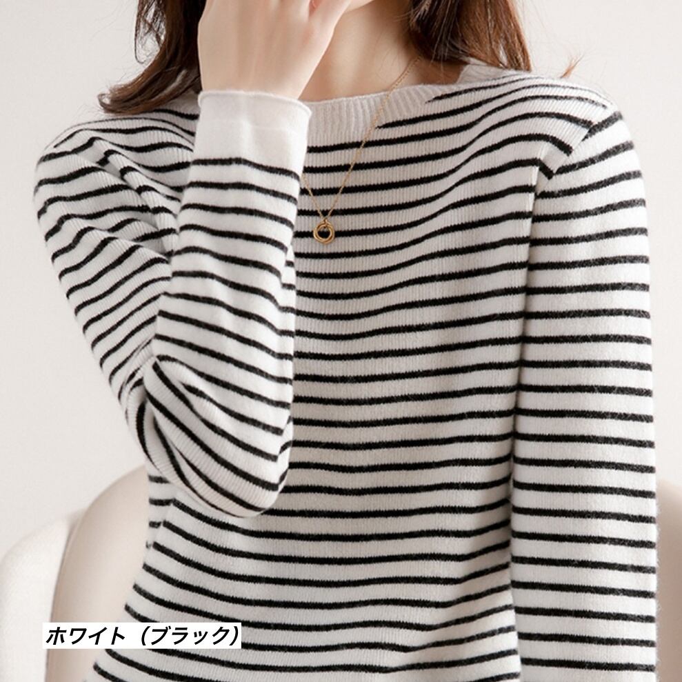 トップス レディース カットソー 長袖 ボーダー 春 秋 冬 セミフレア かわいい 大人可愛い きれいめ シンプル カジュアル 大人 上品 おしゃれ お洒落 レトロ 大人女子 キュート とろみ感 抜け感 Uネック 袖あり 白 ホワイト 黒 ブラック 灰色 グレー オフホワイト ベージュ S M L XL 2XL 3XL 20代 30代 オフィス 通勤 学生 通学 デート お出かけ 女子会 休日 着回し 普段使い 韓国 韓国系 オルチャン モテ プチプラ 送料無料 トレンド 流行 インスタ映え | Rena 韓国ファッション レディースアパレル