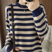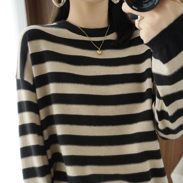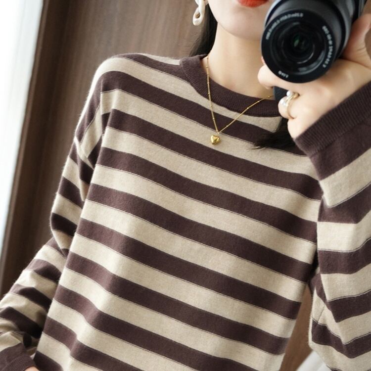 トップス レディース ニット 長袖 ボーダー 春 秋 冬 セミフレア かわいい 大人可愛い きれいめ シンプル カジュアル 大人 おしゃれ お洒落 大人可愛い 大人女子 キュート とろみ感 Uネック 袖あり ブラック ブルー 灰色 グレー イエロー オレンジ ネイビー くすみカラー 大人カラー モカ S M L XL 20代 30代 オフィス 通勤 学生 通学 デート お出かけ 女子会 休日 着回し 普段使い 韓国 韓国系 ファッション コーデ スタイル モテ 送料無料 トレンド 流行 インスタ映え | Rena 韓国ファッション レディースアパレル