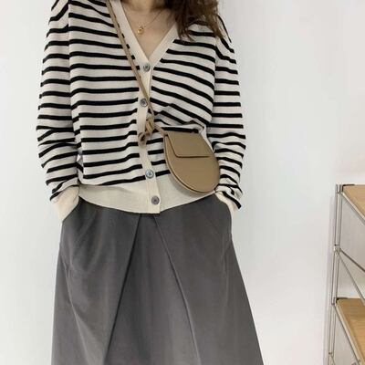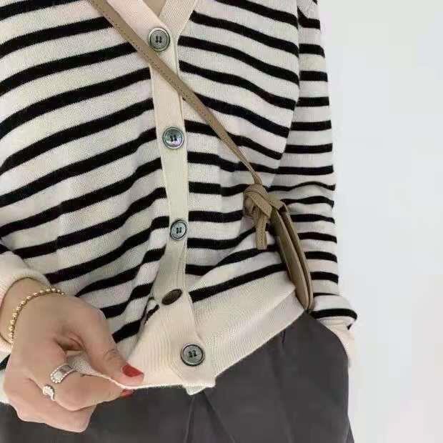 トップス レディース カーディガン 長袖 ボーダー 春 秋 冬 セミフレア 伸縮性 かわいい 大人可愛い きれいめ シンプル カジュアル 大人 おしゃれ お洒落 大人可愛い 大人女子 キュート とろみ感 抜け感 Vネック 袖あり くすみカラー 大人カラー ベイクドカラー S M L XL 20代 30代 学生 通学 デート お出かけ 女子会 休日 アウトドア イベント 着回し 普段使い 韓国 韓国系 オルチャン ファッション コーデ スタイル 楽ちん モテ 送料無料 トレンド 流行 インスタ映え | Rena 韓国ファッション レディースアパレル