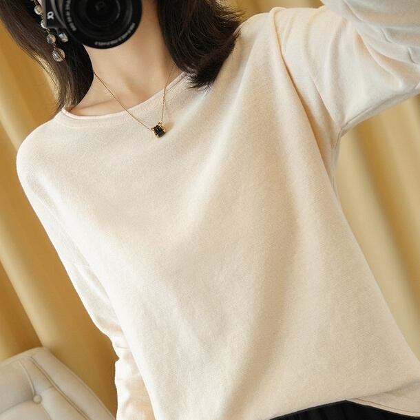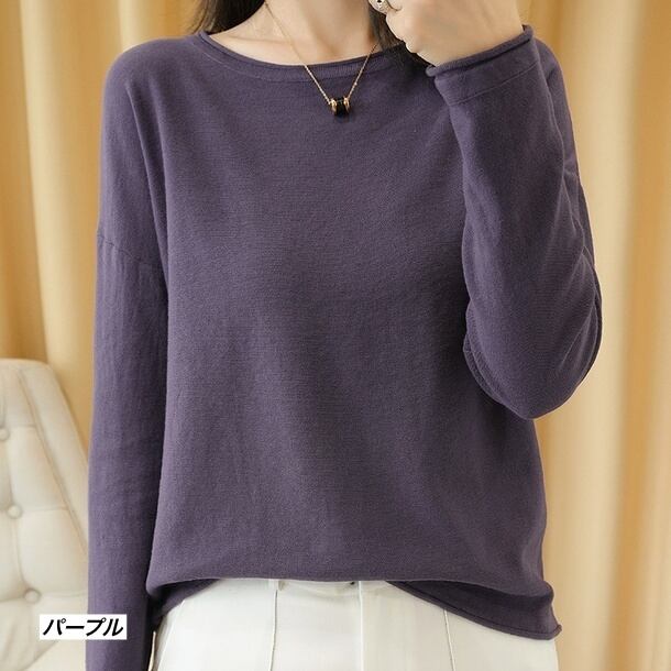 優しい着心地がうれしい、ラウンドネックセーターです。