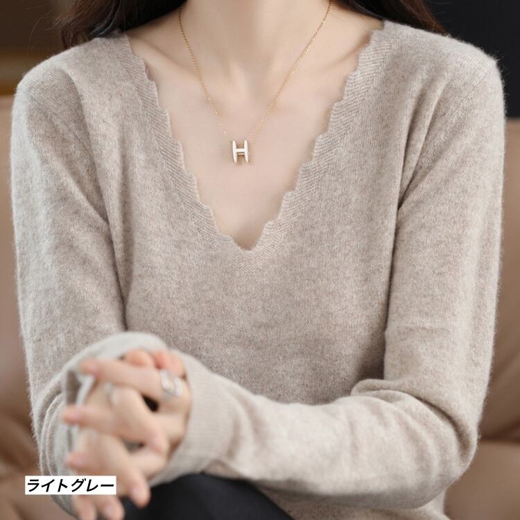 デコルテ周りをより魅力的に見せてくれる、大人の女性のためのVネックトップスです。