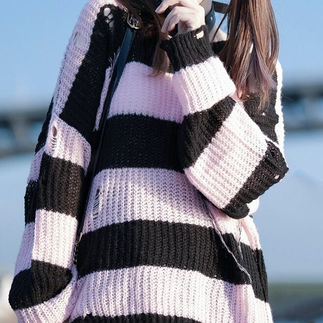 トップス レディース セーター ロング丈 ボーダー 春 秋 冬 セミフレア ワイド 透け感 かわいい 大人可愛い きれいめ シンプル カジュアル 大人 おしゃれ お洒落 レトロ 大人女子 エレガント とろみ感 抜け感 Uネック ロング 袖あり ピンク くすみカラー ゆったり ワンサイズ 20代 30代 学生 通学 デート お出かけ 公園デビュー 女子会 休日 着回し 普段使い 韓国 韓国系 オルチャン コーデ スタイル 楽ちん モテ 体系カバー プチプラ 送料無料 トレンド 流行 インスタ映え | Rena 韓国ファッション レディースアパレル