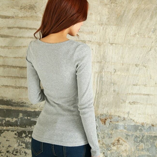 体のラインにフィットしてすっきりとしたシルエットを演出する、スリムトップスです。