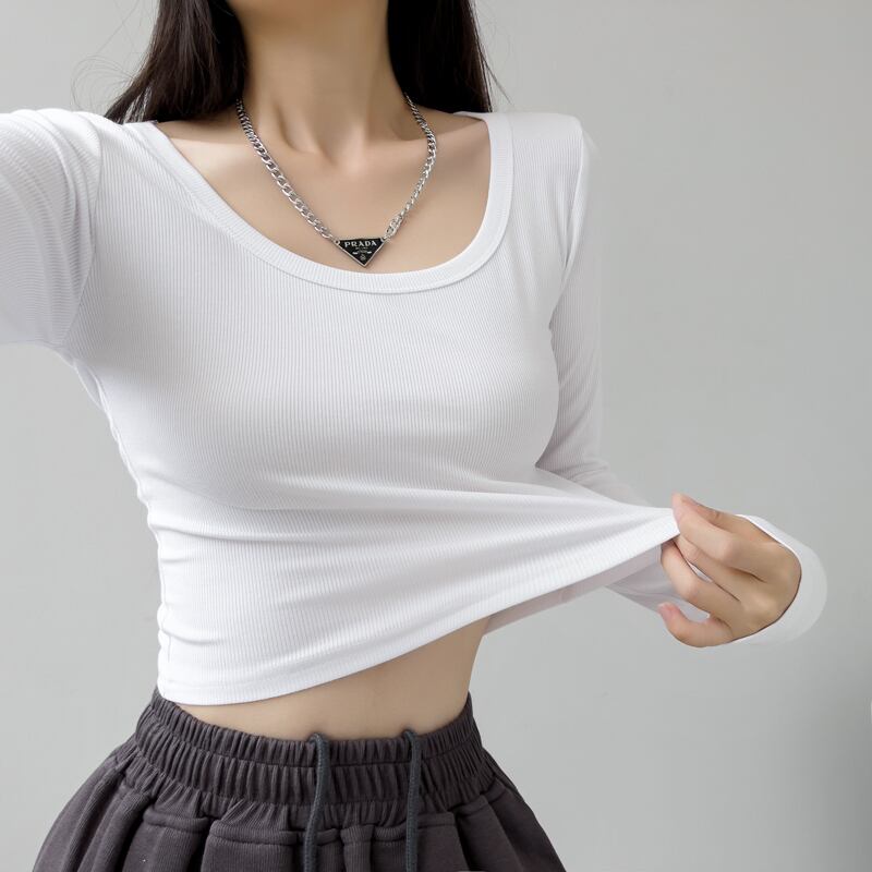 トップス レディース カットソー ショート丈 長袖 無地 春 秋 冬 タイト 細身 かわいい 大人可愛い きれいめ シンプル カジュアル 大人 おしゃれ お洒落 レトロ 大人女子 エレガント とろみ感 抜け感 Uネック ショート 袖あり 白 ホワイト 黒 ブラック 青 ブルー 灰色 グレー S M L XL 20代 30代 学生 通学 デート お出かけ 公園デビュー 女子会 休日 着回し 普段使い 韓国 韓国系 オルチャン ファッション コーデ 楽ちん モテ プチプラ 送料無料 流行 インスタ映え | Rena 韓国ファッション レディースアパレル