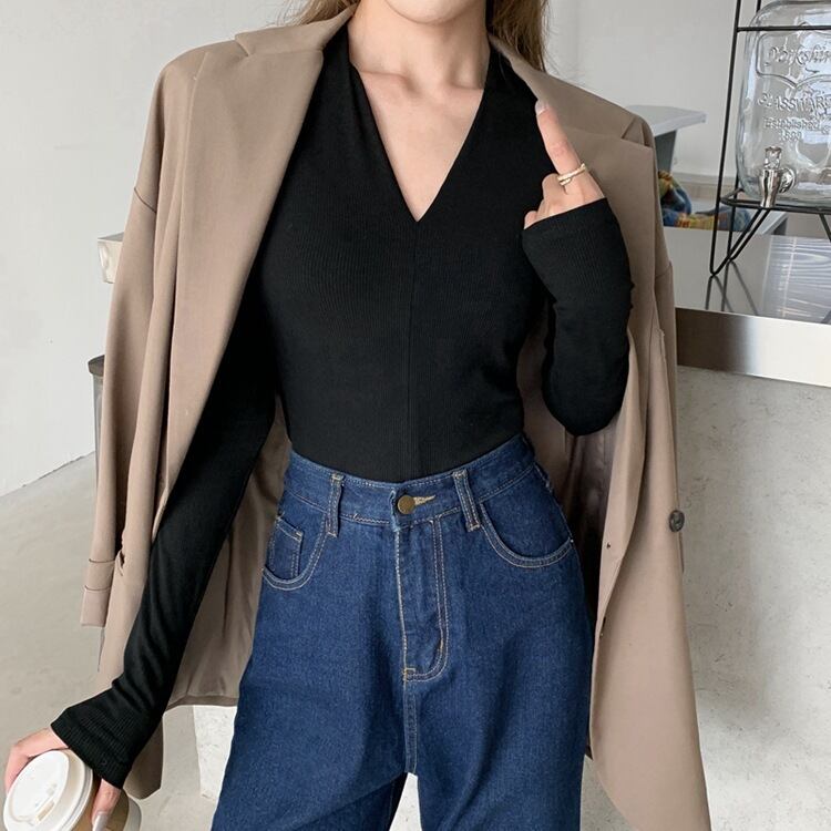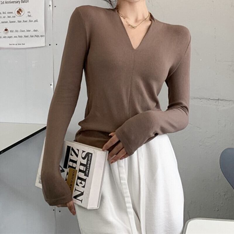 トップス レディース カットソー ショート丈 長袖 無地 春 秋 冬 スリム 細身 かわいい 大人可愛い きれいめ シンプル カジュアル 大人 おしゃれ お洒落 レトロ 大人女子 個性的 とろみ感 抜け感 Vネック ショート 袖あり 白 ホワイト 黒 ブラック 茶色 ブラウン くすみカラー S M L XL 20代 30代 学生 通学 デート お出かけ 公園デビュー 女子会 休日 アウトドア 旅行 着回し 普段使い 韓国 韓国系 コーデ スタイル 楽ちん モテ プチプラ 送料無料 流行 インスタ映え | Rena 韓国ファッション レディースアパレル