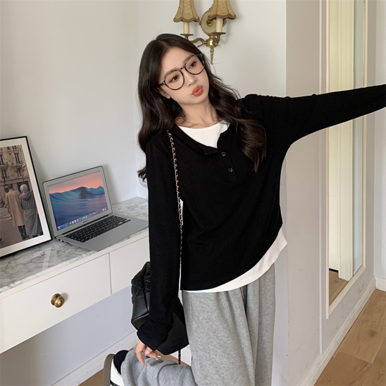 コーディネートが苦手なあなたもこれだけあればおしゃれが決まる、フェイクツーピーストップスです。