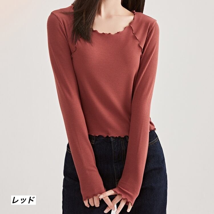 トップス レディース カットソー ショート丈 長袖 無地 春 秋 冬 スリム かわいい 大人可愛い きれいめ シンプル カジュアル 大人 上品 おしゃれ お洒落 レトロ 大人女子 こなれ感 キュート 個性的 とろみ感 Uネック 袖あり 白 ホワイト 黒 ブラック 赤 レッド 青 ブルー 緑 グリーン くすみカラー S M L 20代 30代 学生 通学 お出かけ 女子会 休日 アウトドア 着回し 普段使い コーデ スタイル 楽ちん あったか モテ 送料無料 トレンド 流行 インスタ映え | Rena 韓国ファッション レディースアパレル