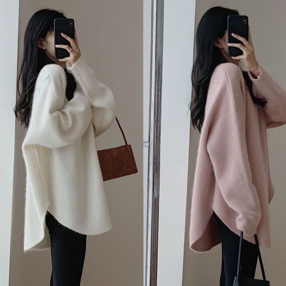 トップス レディース ニット セーター 長袖 無地 春 秋 冬 かわいい 大人可愛い きれいめ シンプル カジュアル 大人 上品 おしゃれ お洒落 レトロ 大人女子 こなれ感 キュート 個性的 クール フォーマル とろみ感 Uネック 袖あり 白 ホワイト 黒 ブラック 赤 レッド 灰色 グレー くすみカラー S M L XL 2XL ゆったり 20代 30代 学生 通学 お出かけ 女子会 休日 アウトドア 着回し 普段使い コーデ スタイル 楽ちん あったか モテ 送料無料 トレンド 流行 インスタ映え | Rena 韓国ファッション レディースアパレル