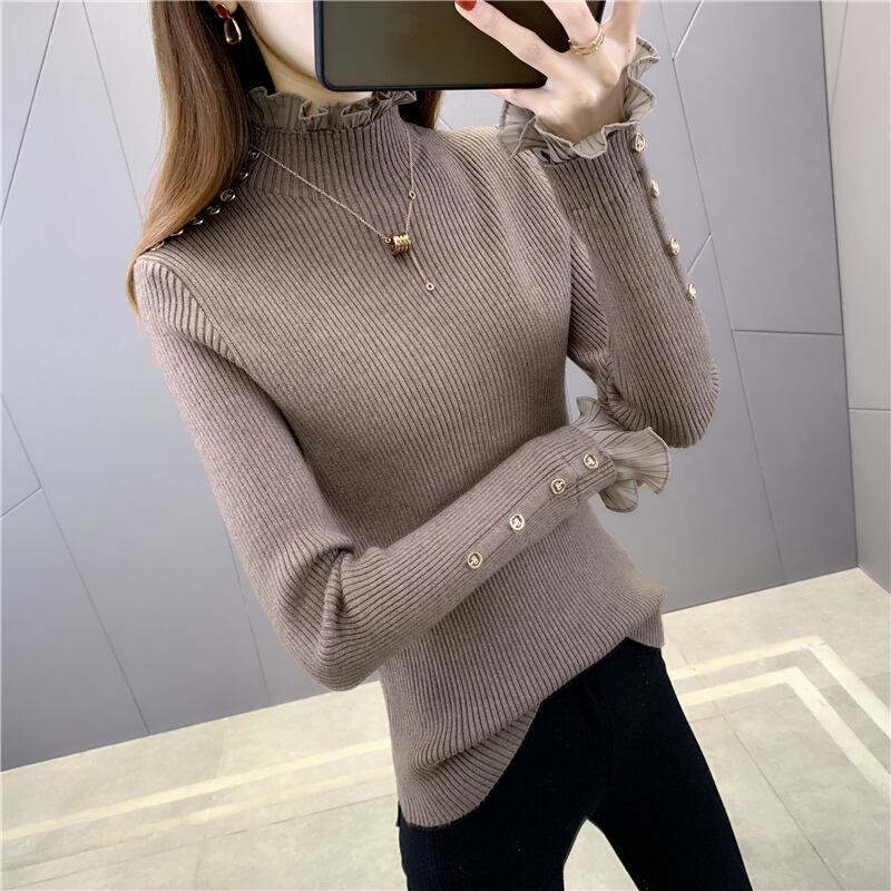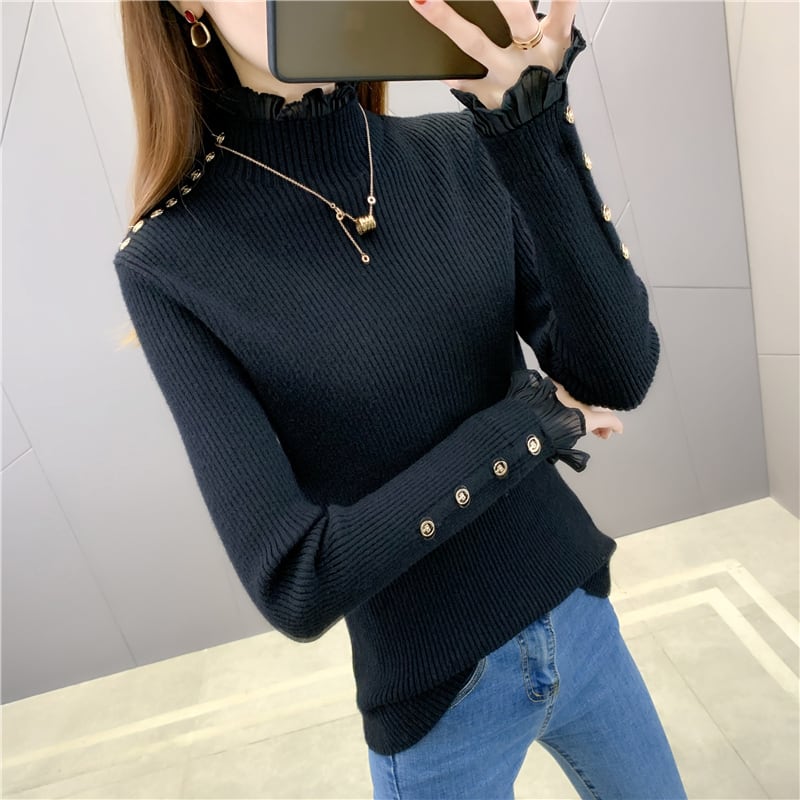 トップス レディース ニット 長袖 無地 春 秋 冬 セミフレア レース かわいい 大人可愛い きれいめ シンプル カジュアル 大人 上品 おしゃれ お洒落 レトロ 大人女子 こなれ感 ラブリー キュート ルーズ 個性的 とろみ感 ハイネック 袖あり 黒 ブラック 青 ブルー 灰色 グレー カーキ くすみカラー 大人カラー S M L XL 20代 30代 学生 通学 デート お出かけ 女子会 休日 着回し 普段使い ファッション コーデ スタイル 楽ちん 送料無料 トレンド 流行 インスタ映え | Rena 韓国ファッション レディースアパレル