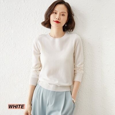 あたたかく、シンプルなデザインで着こなしやすい、丸首のニットセーター。