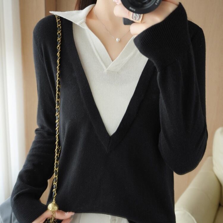 きちんと見えするので、さまざまな場面で使いやすい、フェイクツーピーストップスです。