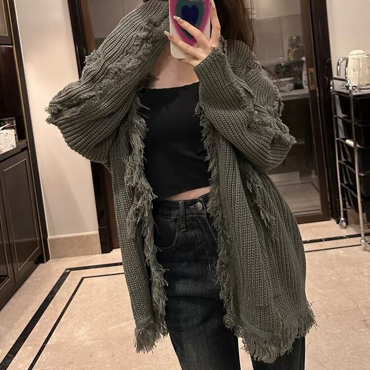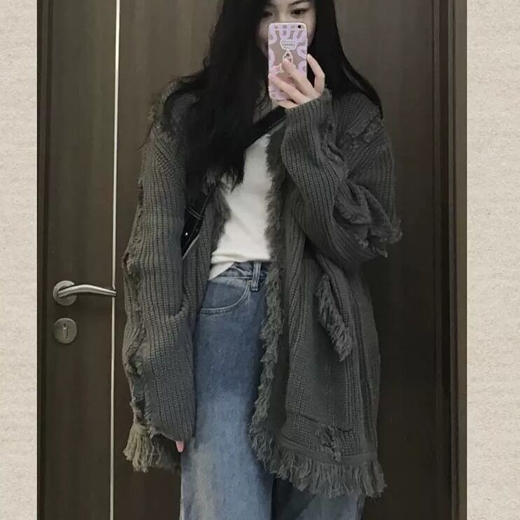 トップス レディース ニット カーディガン ロング丈 長袖 無地 春 秋 冬 セミフレア かわいい 大人可愛い きれいめ シンプル カジュアル 大人 上品 おしゃれ お洒落 レトロ 大人女子 こなれ感 ラフ ラブリー キュート ルーズ 個性的 とろみ感 Vネック 袖あり 灰色 グレー くすみカラー S M L XL 2XL 20代 30代 学生 通学 デート お出かけ 女子会 休日 着回し 普段使い 韓国系 オルチャン ファッション コーデ あったか モテ 送料無料 トレンド 流行 インスタ映え | Rena 韓国ファッション レディースアパレル