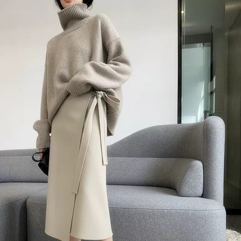 トップス レディース セーター ロング丈 長袖 無地 プリント 春 秋 冬 セミフレア かわいい 大人可愛い きれいめ シンプル カジュアル 大人 上品 おしゃれ お洒落 レトロ 大人女子 こなれ感 ラフ ラブリー キュート ルーズ 個性的 とろみ感 ハイネック 袖あり 黒 ブラック 灰色 グレー カーキ くすみカラー S M L XL 2XL 20代 30代 学生 通学 デート お出かけ 女子会 休日 着回し 普段使い コーデ スタイル 楽ちん あったか モテ 送料無料 トレンド 流行 インスタ映え | Rena 韓国ファッション レディースアパレル