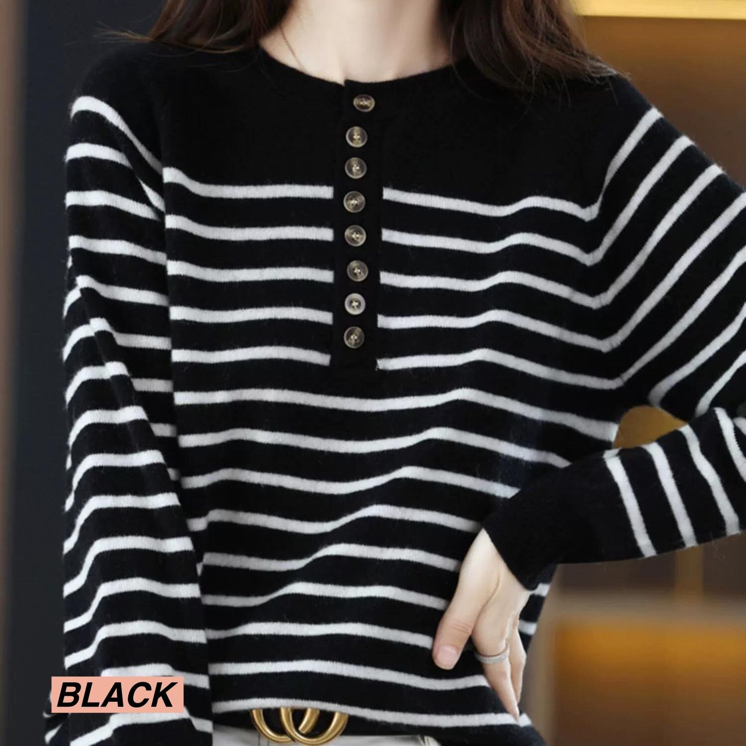 首元の可愛らしいデザインが魅力のボーダーニット。