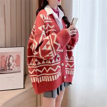 トップス レディース ニット カーディガン ロング丈 長袖 柄 春 秋 冬 セミフレア かわいい 大人可愛い きれいめ シンプル カジュアル 大人 上品 おしゃれ お洒落 レトロ 大人女子 こなれ感 ラフ ラブリー キュート ルーズ 個性的 とろみ感 Vネック 袖あり 黒 ブラック 赤 レッド くすみカラー S M L XL 2XL 20代 30代 学生 デート お出かけ 女子会 休日 着回し 普段使い 韓国 韓国系 オルチャン コーデ 楽ちん あったか モテ 送料無料 トレンド 流行 インスタ映え