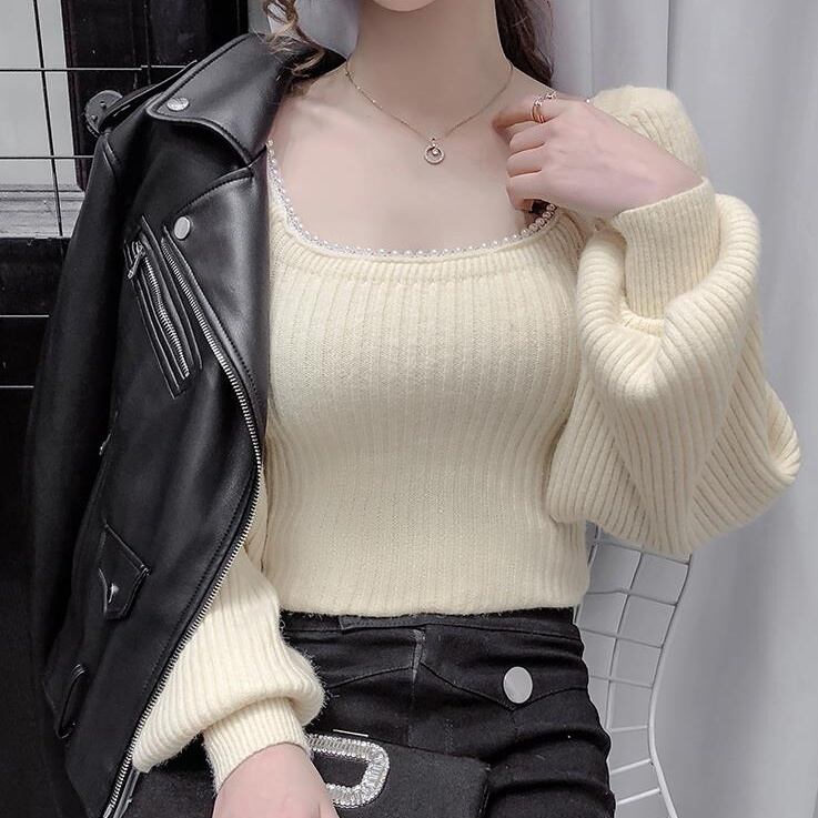 可愛らしい小さなセーターが登場。女性の秋冬スタイルにぴったりなスクエアネックがちょっぴりセクシーなデザインが特徴です。